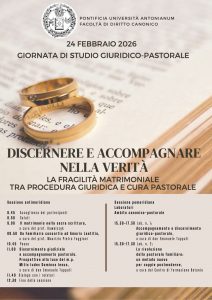 La Facoltà di Diritto della Pontificia Università Antonianum ha organizzato una giornata di studio giuridico-pastorale sul tema "Discernere e accompagnare nella verità. La fragilità matrimoniale tra procedura giuridica e cura pastorale".