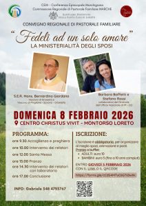 La commissione regionale per la pastorale familiare della Conferenza Episcopale Marchigiana invita al Convegno di Pastorale Familiare il prossimo 8 febbraio presso il Centro Christus Vivit - Montorso Loreto.